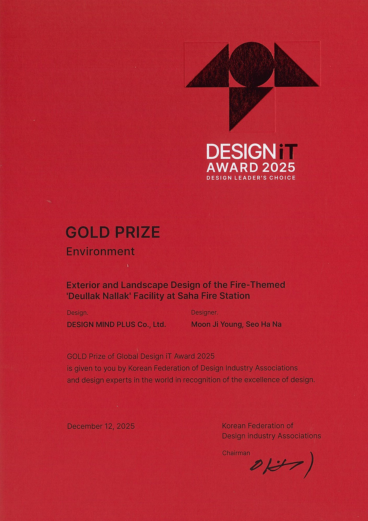 2025 글로벌 디자인잇어워드 금상 사하구 신평동 소방서 증축 및 외관 정비사업