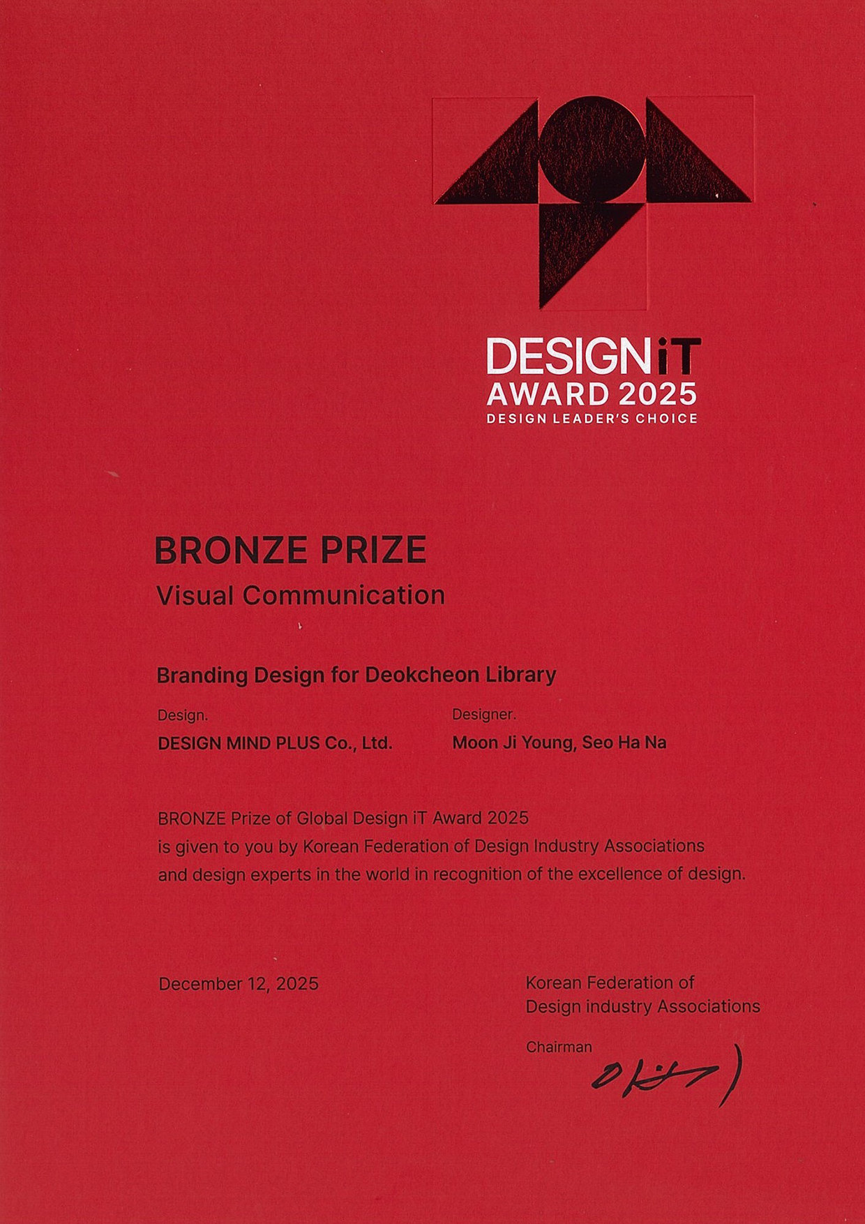 2025 글로벌 디자인잇어워드 동상 덕천도서관 내,외부 사인물 제작 설치