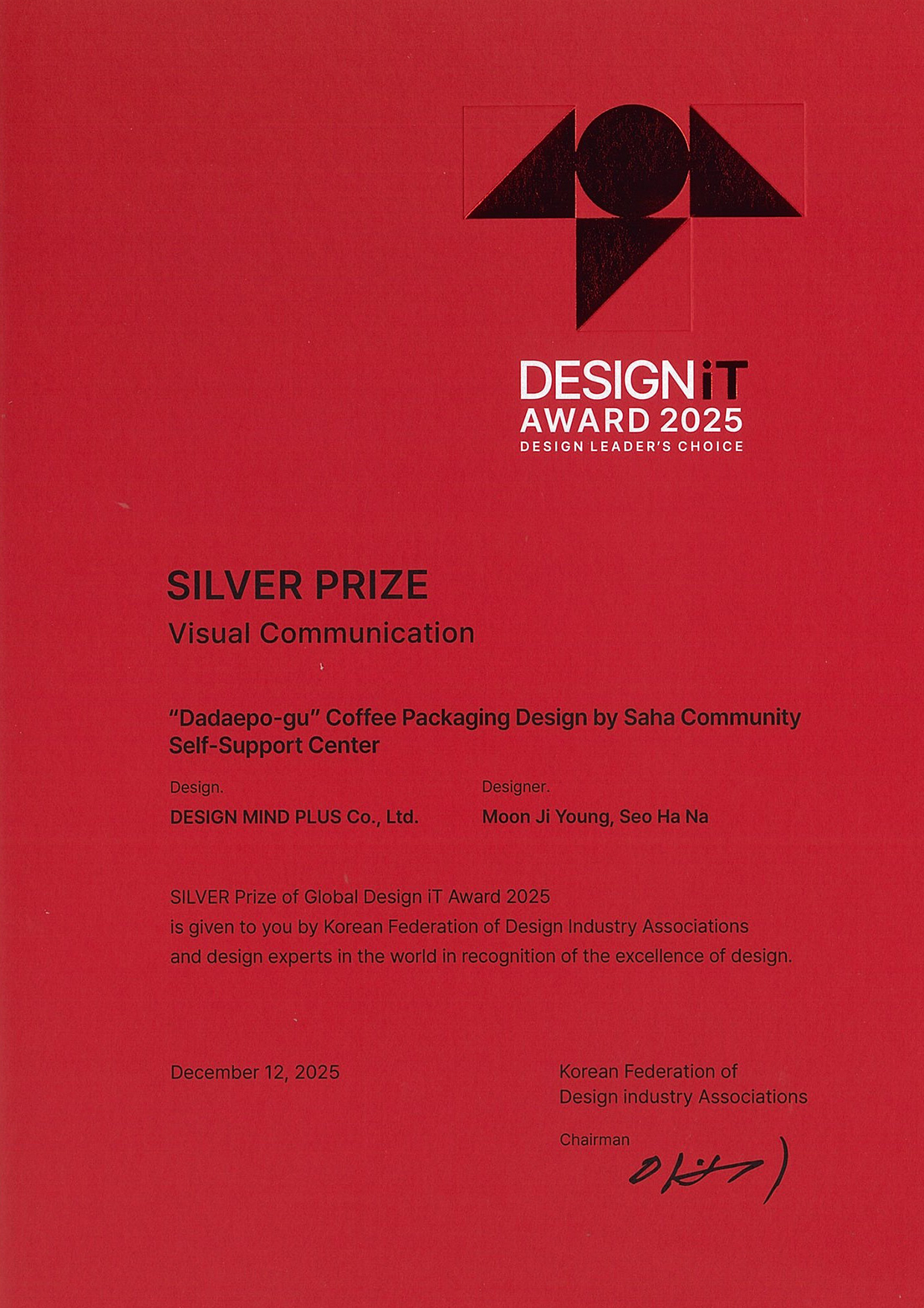2025 글로벌 디자인잇어워드 은상 사하지역자활센터 다대포구 커피패키지 디자인